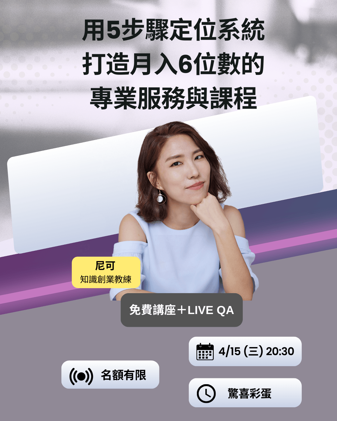 不是因為你做錯了。而是大多數的定位方法,本來就不是為了「成交與變現」設計的。在這場講座中,我會帶你用一套為專業服務與課程變現設計的五步驟定位系統。幫你找到一個: